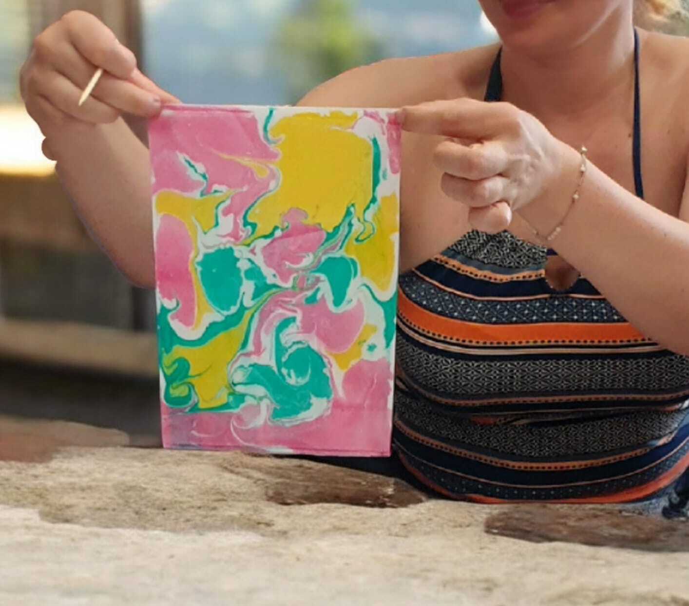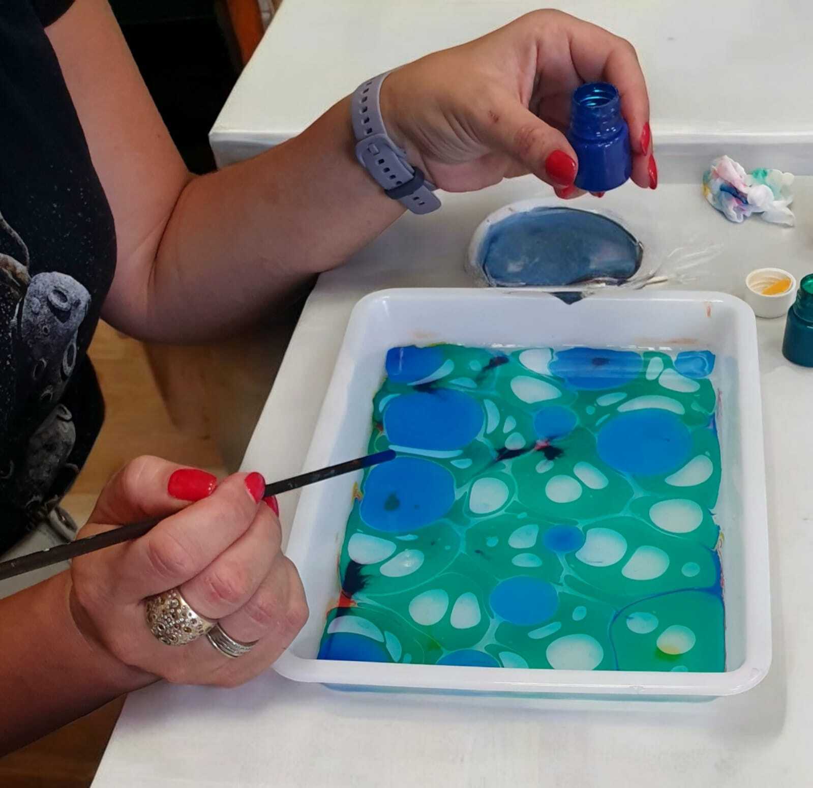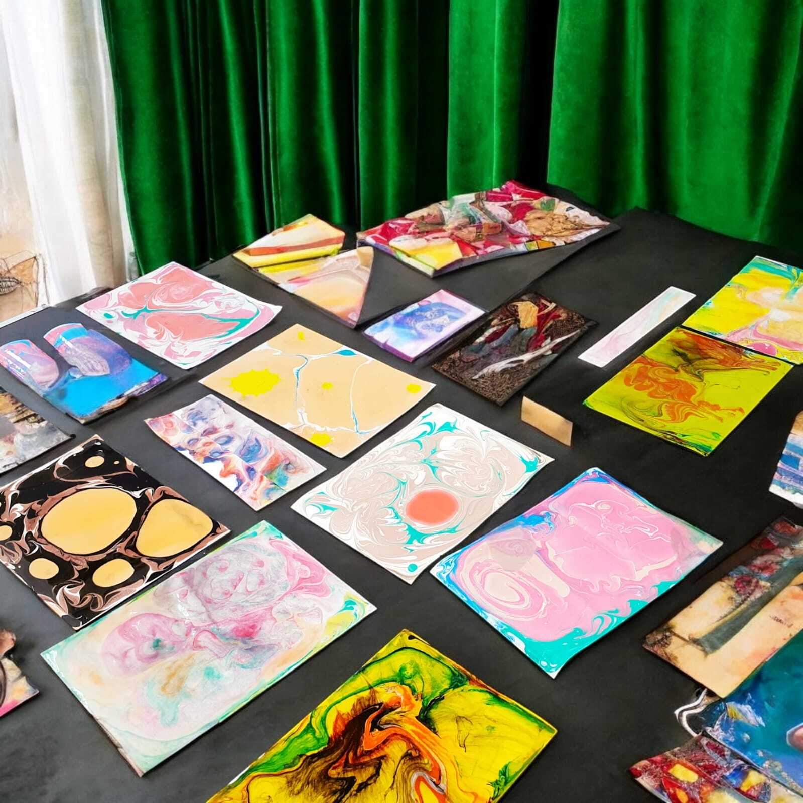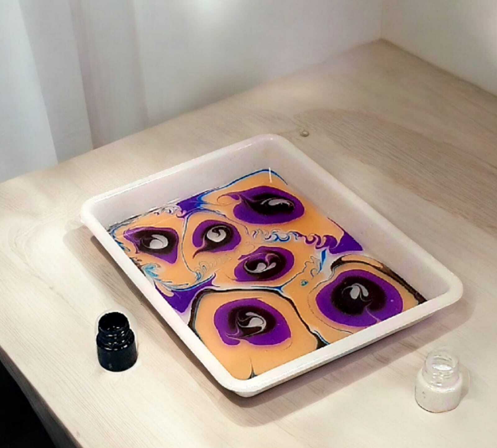 Ebru to wyjątkowa technika, w której tworzy się obraz na powierzchni wody, a następnie przenosi go na papier.