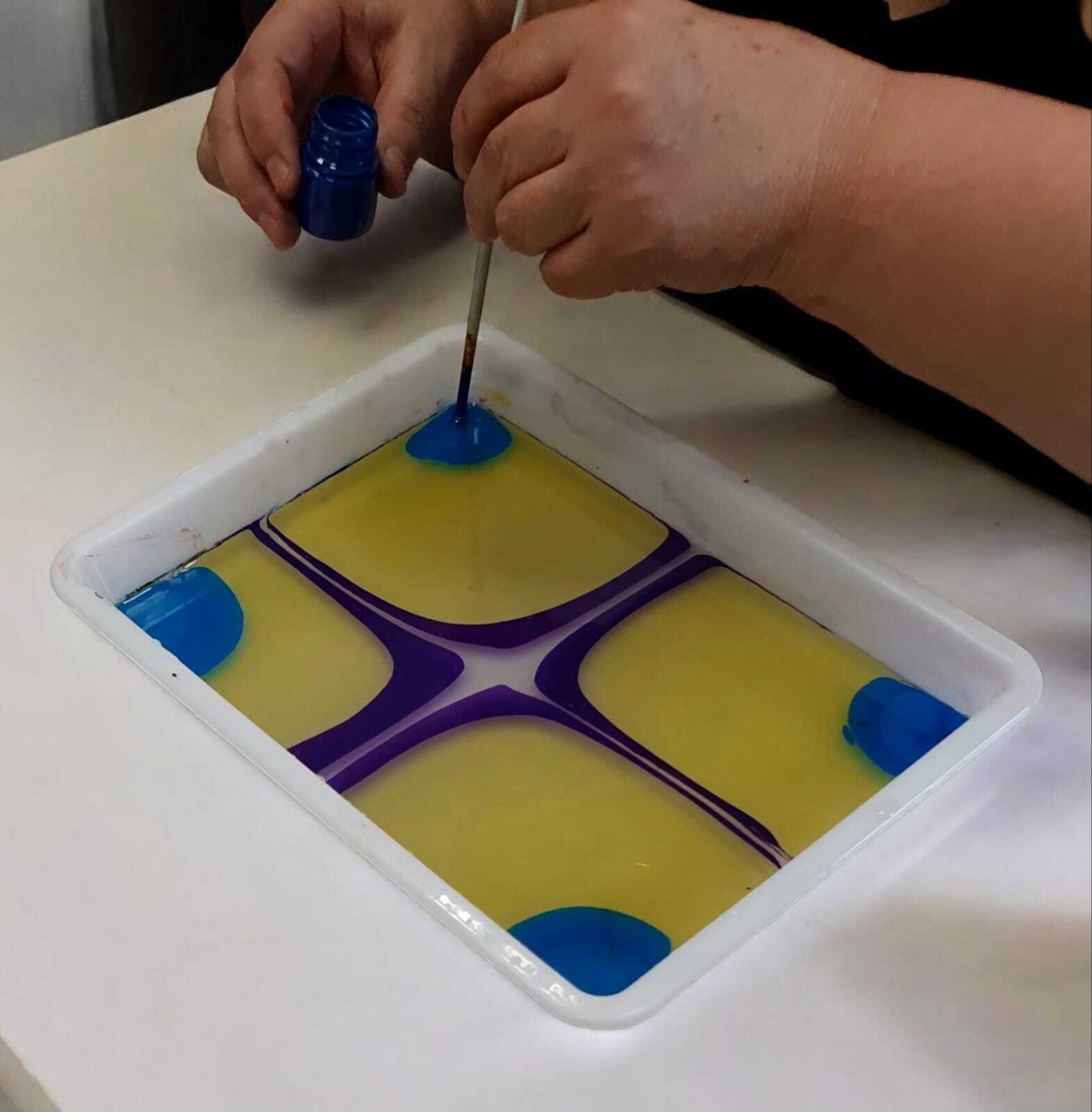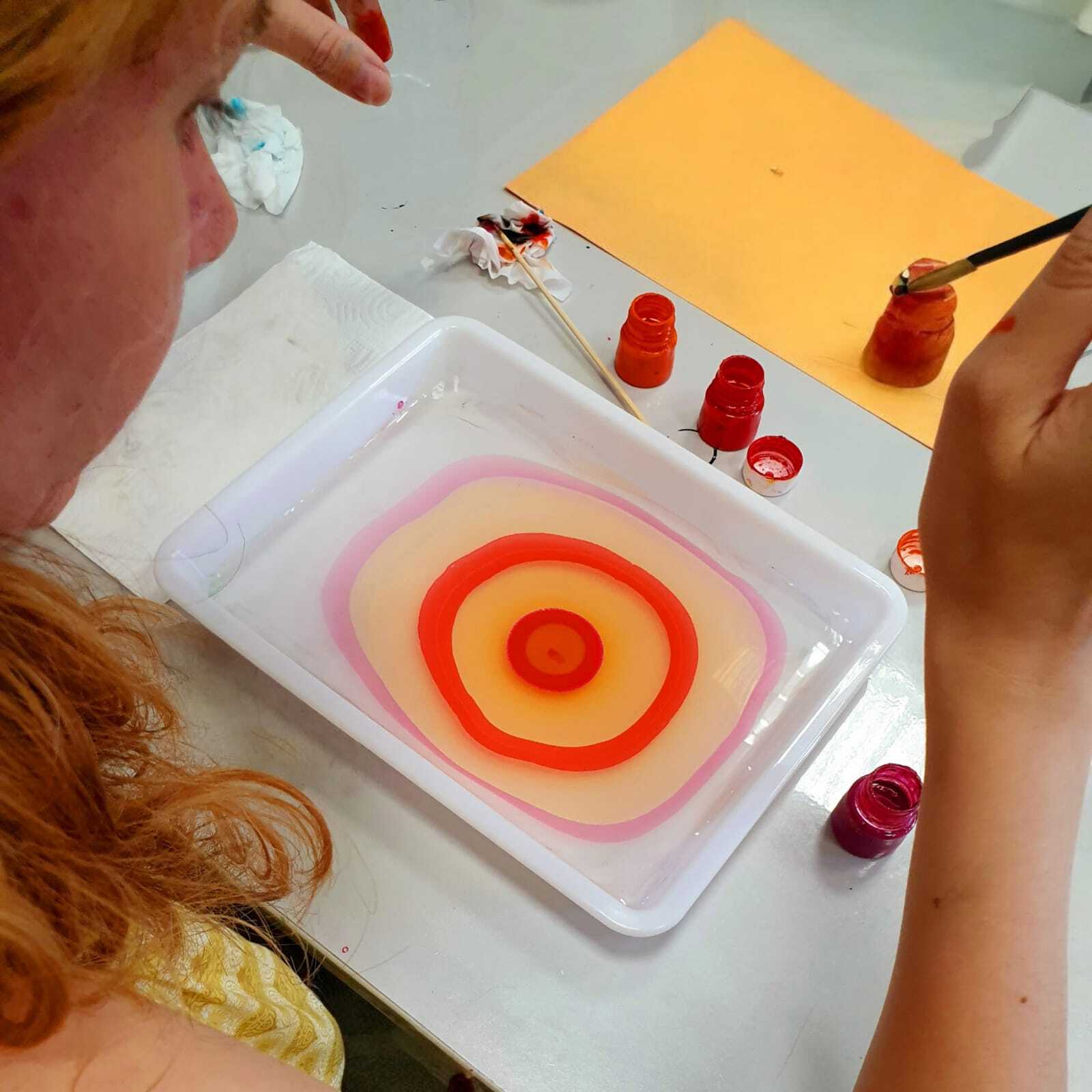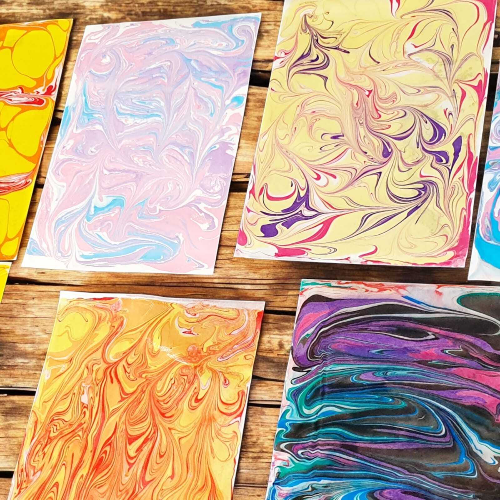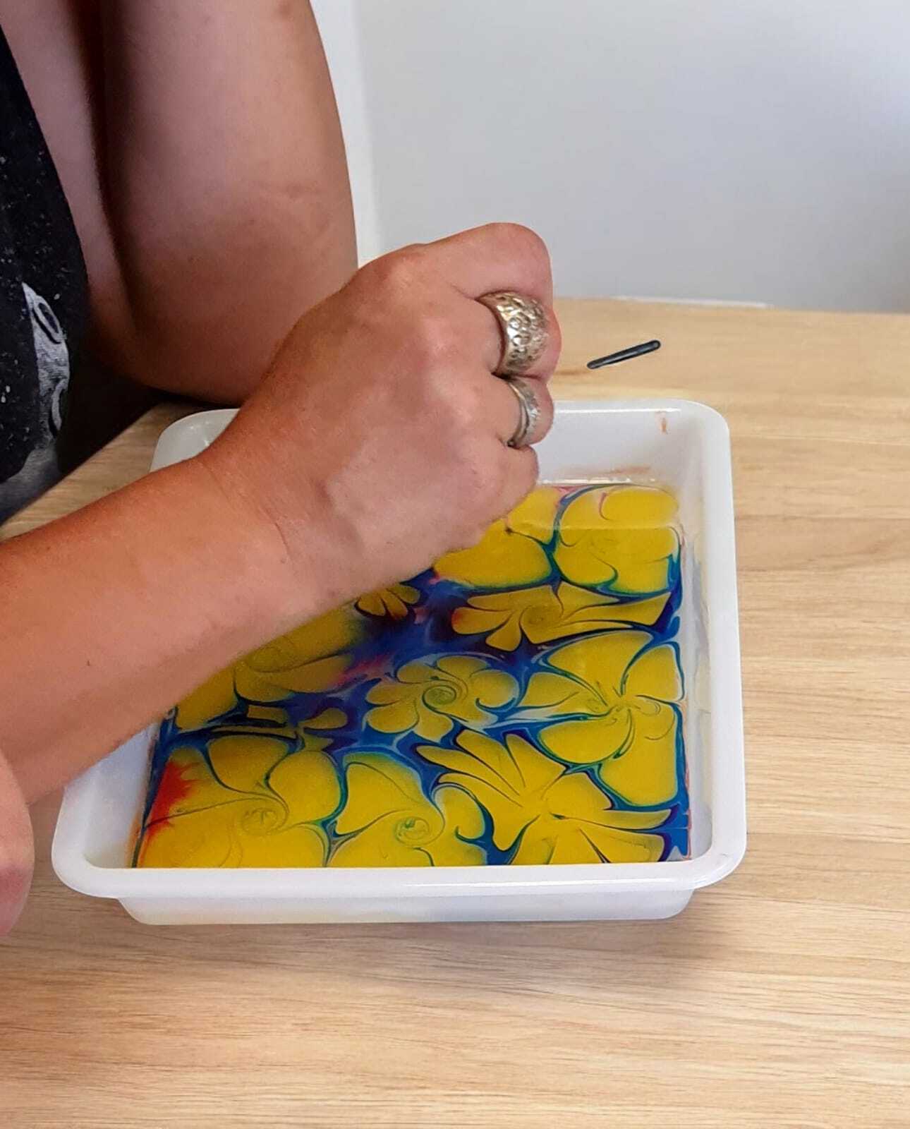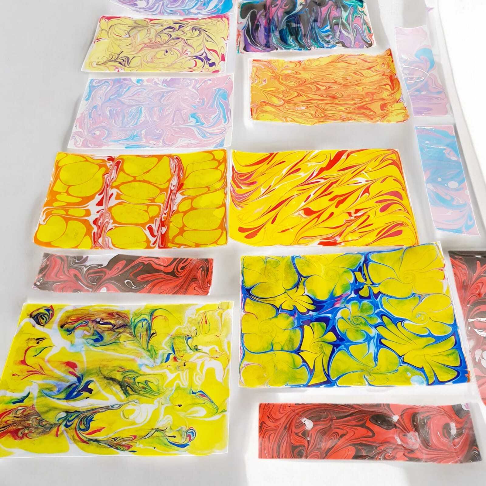 Ebru to wyjątkowa technika, w której tworzy się obraz na powierzchni wody, a następnie przenosi go na papier.