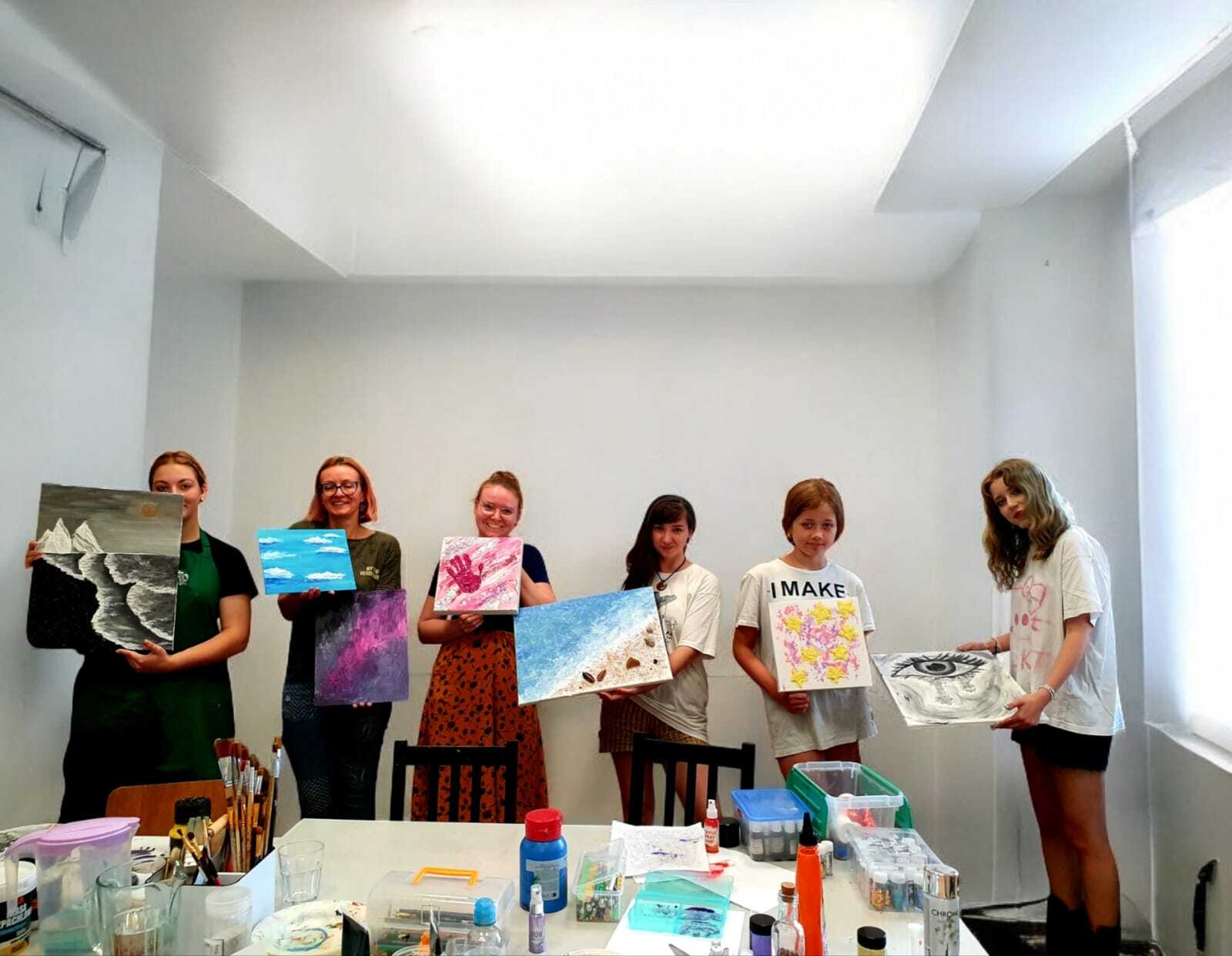 Warsztaty malarstwa intuicyjnego to głęboko relaksujący i kreatywny proces, który pozwala wejść w stan swobodnego tworzenia. Zajęcia zaczynamy od wylosowania karty wzmacniającej pozytywne myślenie — to ona wyznacza energię i kierunek pracy twórczej.