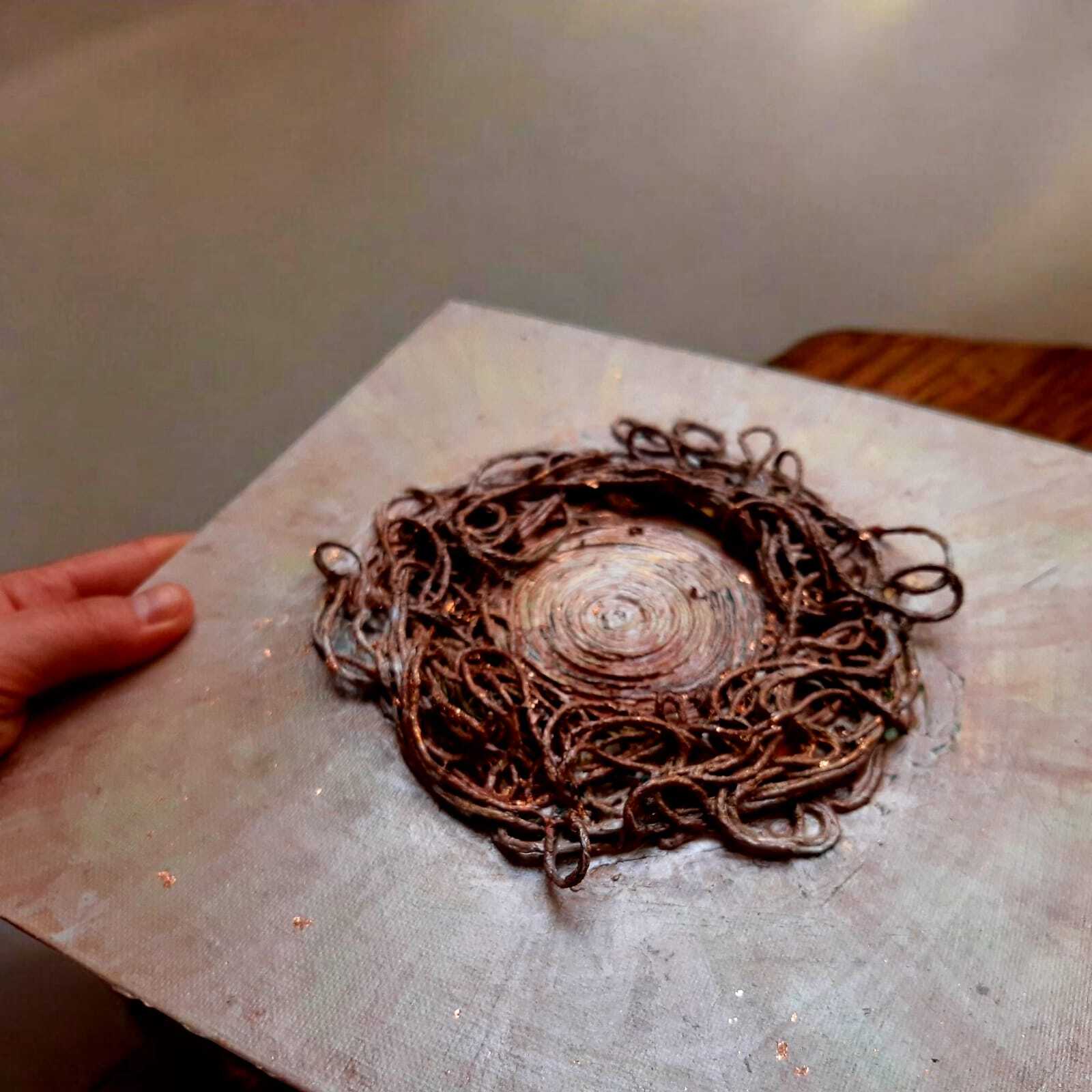 Następnie wykonujemy ćwiczenia aktywizujące prawą półkulę mózgu, które pobudzają kreatywność, poszerzają percepcję i pomagają puścić kontrolę. Po krótkiej rozgrzewce podaję temat przewodni pracy — można go jednak swobodnie interpretować i potraktować jako delikatną inspirację, a nie sztywną instrukcję.